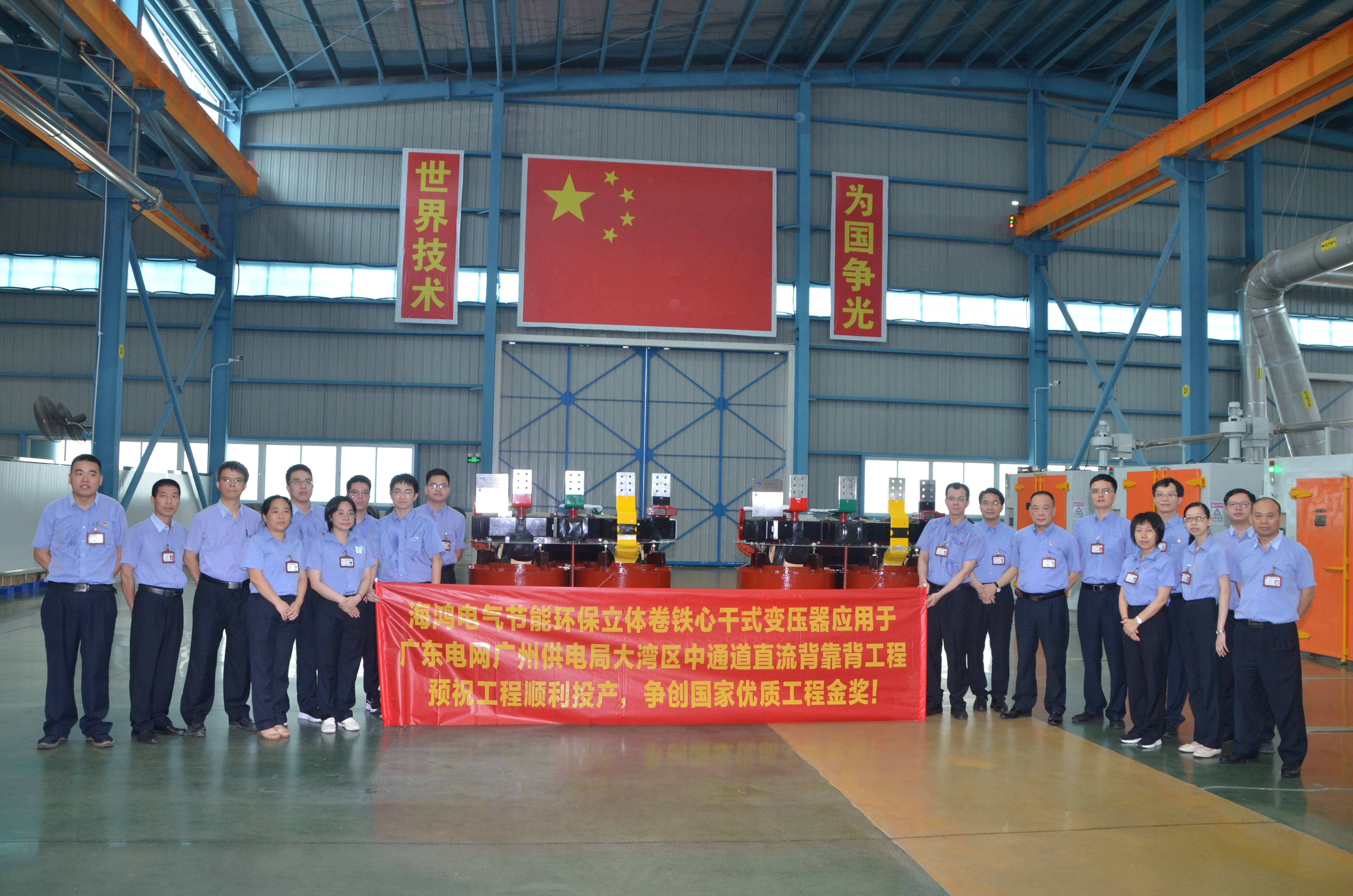此前,z6com尊龙凯时官网电气凭借行业领先的立体卷铁心变压器技术研发能力,制造质量保证能力和全面可靠的交付能力等优势,连续中标大湾区中通道直流背靠背工程和大湾区南粤直流背靠背工程两个列入国家能源局电网主网架规划的重点工程。在接到中标通知后,广州供电局和东莞供电局均对项目实施提出了时间紧、任务重,标准高的要求,z6com尊龙凯时官网电气高度重视并组建专项团队参加客户组织的技术联络会,并在最短的时间内完成产品设计方案并经设计方确认后排产。生产计划部门按照客户要求的交货时间抓紧安排生产,虽然受今年疫情和限电的影响,材料采购和生产节奏受到干扰,但在各部门的努力下,大家克服困难,千方百计保证生产任务。公司领导和技术人员也每天紧密跟进生产一线指导生产,质检人员全面做好过程质量控制确保万无一失,并积极配合甲方代表到厂监造和出厂试验见证工作。